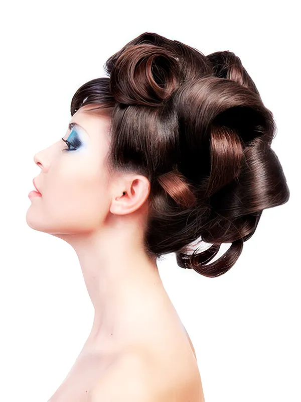 舞妓さんと同じ鬢付け油やコテを使う伝統技法で、艶とシルエットにこだわって丁寧に結い上げます。 地毛ならではの自然なフィット感は、どの角度からもアップでも、写真をより一層美しいものとします。 SNS映えも間違いなし。髪は肩+10cmあればOK。