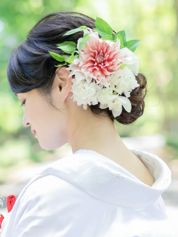 新婦様のご要望に寄り添った、世に2つと無いおひとりお一人に合ったヘアスタイルをご提案します。 生花を使ったモダンスタイルから、伝統的な文金高島田の地毛結いまで。